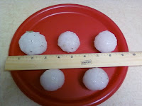Back to the storm…I was doing sessions at the church some hours before the group, so I was there when it hit. First it rained and then down came pea-sized hail. Within minutes the sky exploded into hail that pummeled the ground from all angles. I’ve never seen anything like it. Just incredible. It was like someone turned over huge buckets of ice and shook them out at us from several different directions. The hail was golf-ball sized and rock-hard and the entire grounds were covered in white ice and fallen greenery from the trees.